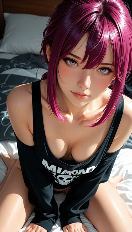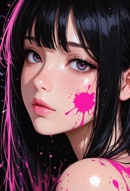 Negative prompt: worst quality, low quality, displeasing, text, watermark, bad anatomy, text, artist name, signature, deformed hands, missing finger, shiny skin,