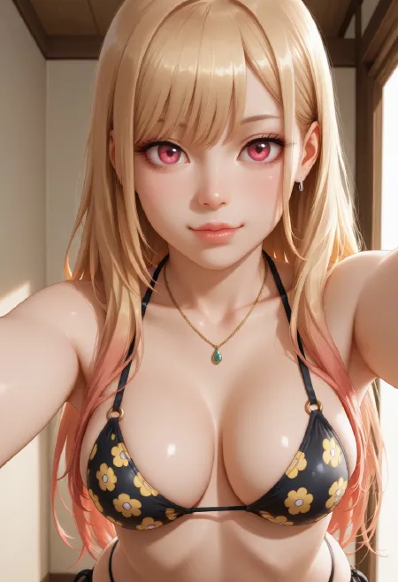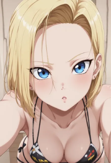 selfie shot,eye level,woman,Android 18,bikini,