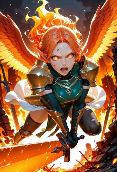 Negative prompt: Smooth Negative, light particles, sweat, shiny skin, dual wielding