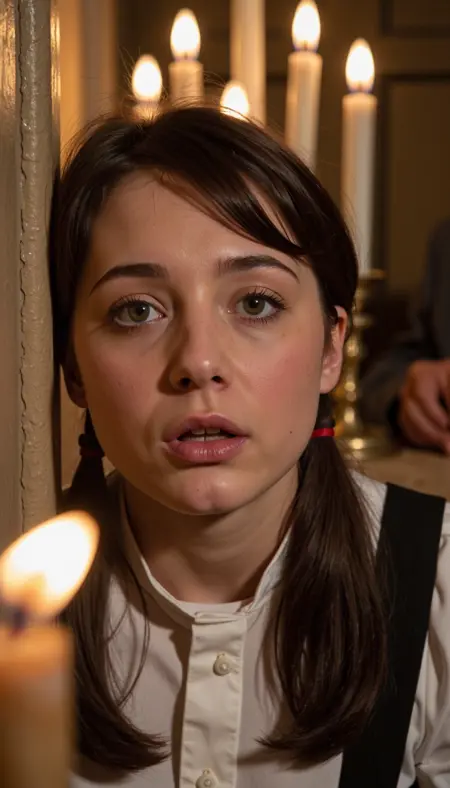The scene is captured in a in a corner nook by a large window, low chair, side table with a candle location with detailed background details in the environment. The award-winning photo is a close-up (film grain:1.2) photo shot with a Kodak PIXPRO AZ401 16MP Digital Camera. The photograph is highly detailed.