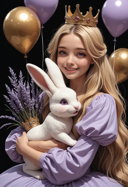 1girl, hug, bunny, giggle, subtle smile,