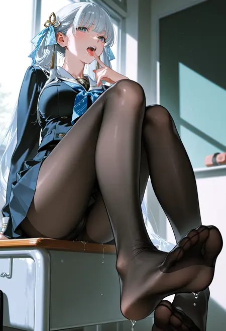 wind,(cinematic lighting),(bokeh),(thick line:1.3),female,hatsune miku,bunches,reach out,extremely detailed eyes,cosmic eyes,detailed background,face focus,depth of field,dynamic from below dutch angle,dynamic pose,solo,breasts,looking at viewer,blush,shirt,skirt,closed mouth,sitting,school uniform,white shirt,sweat,pleated skirt,collared shirt,barefoot,indoors,black skirt,tears,blurry,feet,legs,toes,black bow,blurry background,soles,arm support,foreshortening,toenails,black bowtie,steaming body,foot focus,single sidelock,spread toes,smell,presenting foot,greek toe,masterpiece,best quality,absurdres,newest,very aesthetic,amazing quality,highres,sensitive,highres,ultra detailed,best anatomy,HDR,8K,high detail RAW color art,high contrast,large pupil,(fine fabric emphasis:1.5),(see-through pantyhose:1.5),(shiny pantyhose:1.5),shiny skin,