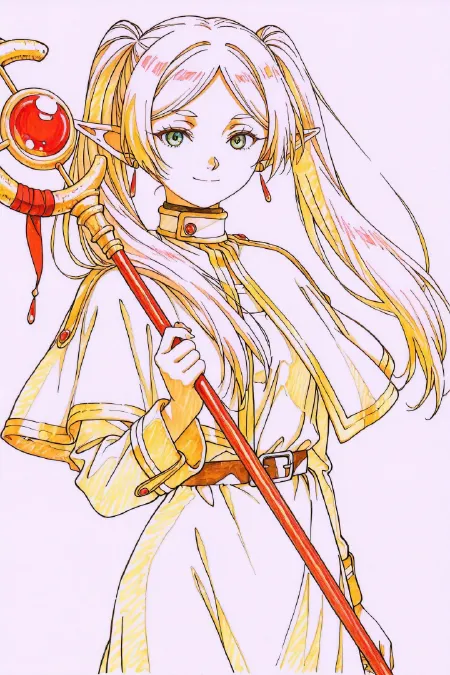 这是一个我的私人模型,专门模仿动画制作过程中,从线稿到彩稿的颜色设定过程,属于一种比较独特艺术效果,其主要特点是在黑白线稿的基础上,增加了手绘上色(一般为彩色铅笔)。