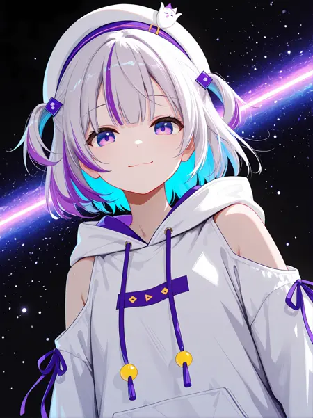 ahoge,multicolored hair.colored inner hair,,silver hair,purple hair