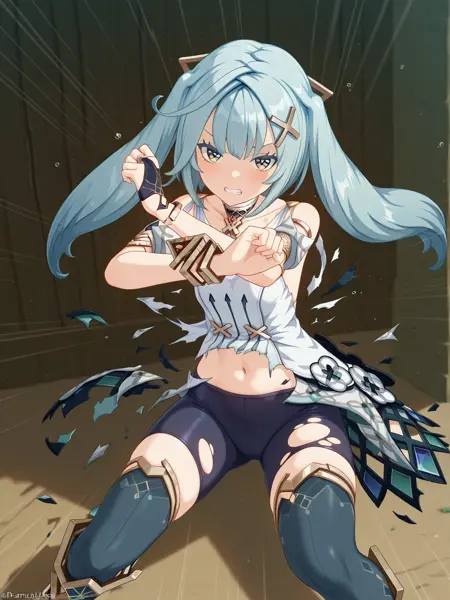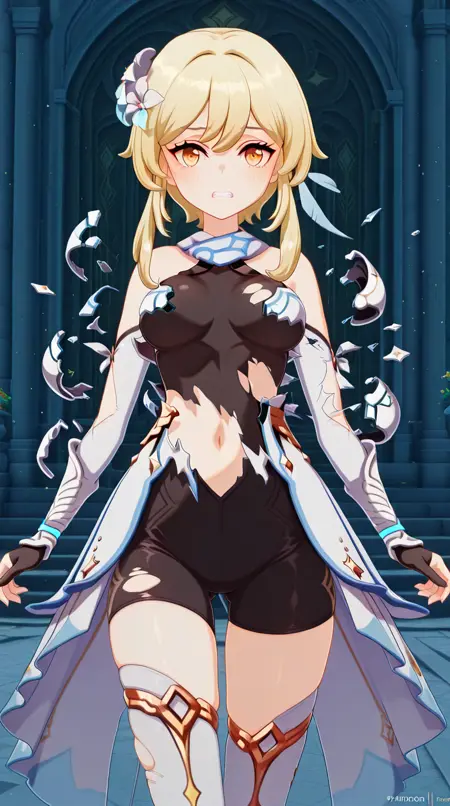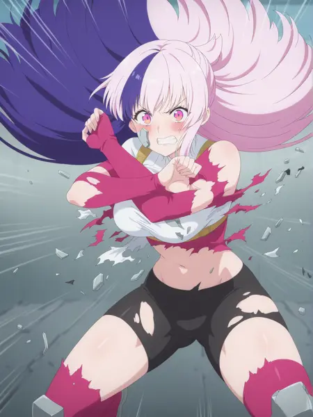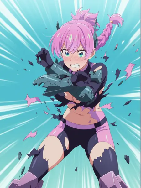 衣服碎裂/铠甲被打碎姿势Illus LoRA,是基于 Illustrious 模型深度训练的专属动作特效 LoRA。它精准捕捉衣物崩裂、铠甲炸碎的动态瞬间,无论是碎片飞溅的轨迹、材质撕裂的纹理,还是能量冲击下的崩解效果,都能细腻还原。适配各类风格创作,让角色战斗、变身等场景的动作表现更具张力。