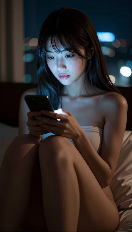 The mood of the image should exude confidence, intimacy, and a subtle sense of rebellion, blending the private nature of her pose with the gritty, bustling public setting. Use cinematic lighting to create dynamic highlights and shadows, ensuring sharp focus and high detail throughout. Incorporate a depth of field effect to enhance the three-dimensional quality of the image, drawing attention to the subject while subtly blurring the crowded background to maintain context without distraction.