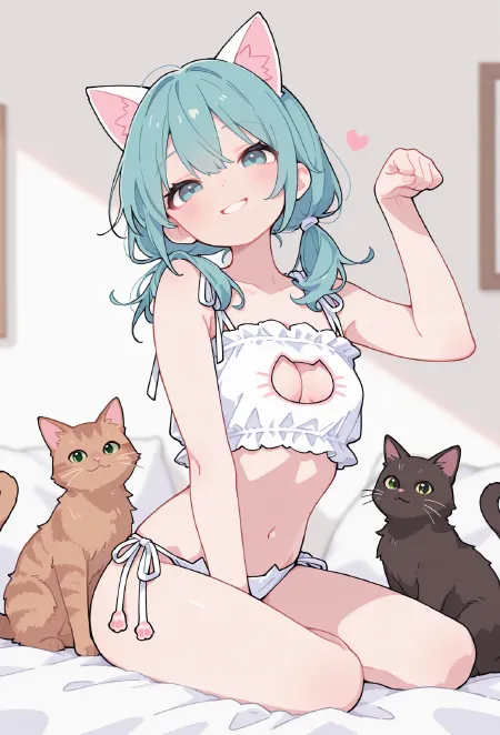 猫咪内衣 Illus / 猫咪 COS 服饰 LoRA 是一款专为二次元创作打造的风格化 LoRA 模型,依托高品质插画大模型 Illustrious 深度训练而成,精准聚焦猫咪主题内衣与萌系 COS 服饰生成。它能快速渲染出细腻可爱的猫耳、猫爪、猫尾等元素,搭配精致贴身的内衣版型与萌系穿搭细节,画风干净、质感通透,兼容主流文生图平台,可轻松生成灵动甜美的猫娘角色